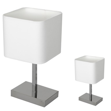 Stolna svjetiljka s dimenzijama 170 mm širine, 170 mm dubine i 350 mm visine, u bijeloj i krom boji, koristi E27 grlo. Napaja se s 230V/50Hz, bez senzora pokreta, s IP20 … Pročitaj više