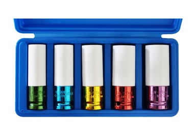 Set udarnih ključeva SW-STAHL veličine 1/2″ sadrži ključeve od 15, 17, 19, 21 i 22 mm, svi s plastičnom zaštitom dizajniranom za alu felge. Ključevi su otporni na udarce i potpuno kapsulirani u plastiku, što ih čini idealnim za zaštitu naplataka i vijaka od ogrebotina.