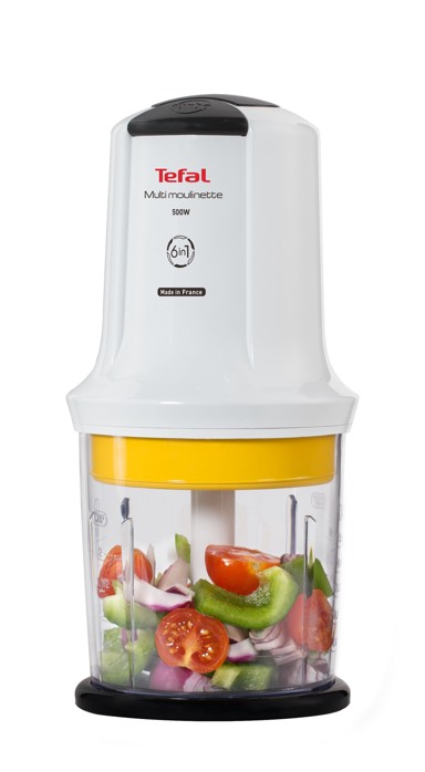 Višenamjenski kuhinjski sjeckalica/blender sustav koji se obično kombinira s ručnim blenderom Tefal serije. Snaga motora omogućuje usitnjavanje povrća, orašastih plodova, bilja i drugih sastojaka, a pribor uključuje sjeckalicu i posudu odgovarajućeg volumena za pripremu umaka, nadjeva ili drugih priloga. Sustav ima jednostavan način montaže i demontaže nastavaka radi lakšeg čišćenja i upotrebe.