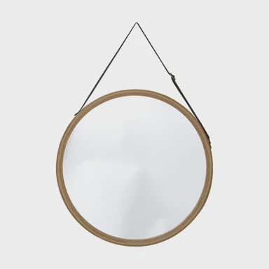 Zidno viseće ogledalo koje odiše elegancijom. Bambus obrub poseban je detalj zbog kojeg je ogledalo zanimljiva vizualna cjelina. Promjer ogledala je 38 cm... Pročitaj više