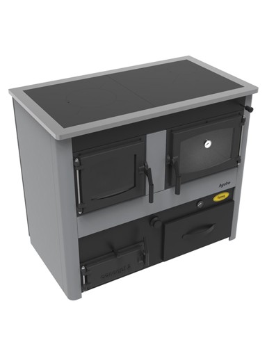 Opremljen je inox rešetkom, termometrom za vodu i pećnicu, ladicom za drva te proširenom pećnicom širine 70 mm. Količina vode u kotlu iznosi 32 litre, maksimalna radna temperatura je 90 °C, a radni tlak do 2,5 bara. Dodatna oprema za ljetni režim i priključak za dimnjak na ploči dostupni su zasebno.