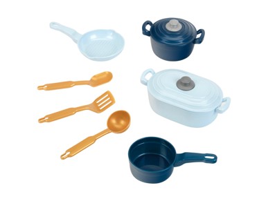 Tako se i najmlađi mogu dobro zabaviti uz sve sitnice i ujedno trenirati svoju motoriku i razumijevanje kuharskih zadataka. Djeca su potpuno opremljena ovim kuhinjskim setom. Sastoji se od kutlače, lopatice, kuhače, koja se može koristiti u grill tavi, loncu, loncu ili pečenjari s poklopcem po potrebi.