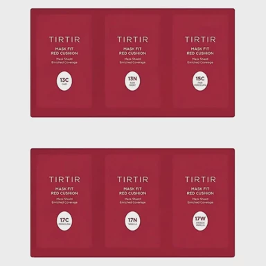TIRTIR Mask Fit Red Cushion 6 Shades Trial Kit Light (13C–17W) probni je set od 6 uzoraka po 1 g namijenjen svjetlijim nijansama tena, s fok... Pročitaj više