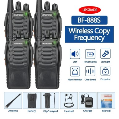 Toki voki radio stanica u setu od četiri komada namijenjena je pouzdanoj komunikaciji na otvorenom i u urbanim uvjetima, uz 16 unaprijed postavljenih kanala koje je moguće birati kotačićem. VOX glasovna kontrola omogućuje hands-free rad, a alarm niske baterije i ugrađena noćna svjetiljka povećavaju praktičnost u terenskim situacijama.