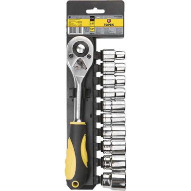 TOPEX 1/2 set nasadnih ključeva (ref. no. 38D652) ima širok raspon upotrebe u malim montažnim radovima, popravku strojeva i vozila i ostalim radovima oko kuće i garaže. Svi dijelovi su izrađeni od visokokvalitetnog legiranog čelika (krom i vanadij) koji garantira dugovječnost alata. Set uključuje račnu, ergonomsku plastičnu dršku sa slojem materijala protiv klizanja za veću sigurnost i udobnost te 10 šesterokutnih nasadnih ključeva.