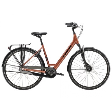 TREK District 2 Equipped Lowstep 2023 savršen je gradski bicikl s niskim okvirom koji omogućuje lako penjanje i silazak, idealan za svakodnevno kretanje po gradu. Shimano Nexus 7-brzinski unutarnji prijenos u kombinaciji s dinamo glavčinom i roller kočnicama nudi čistu i tihu vožnju bez puno održavanja. Opremljen integriranim svjetlima, blatobranima, prtljažnikom i reflektirajućim gumama Bontrager H2, ovaj model osigurava sigurnost i funkcionalnost u svim vremenskim uvjetima, dok udobno sjedalo i podesiva cijev sjedala jamče relaksiranu vožnju.