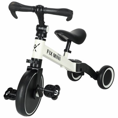 TRIKE FIX MINI Balance bicikl na tri kotača marke nudi tri funkcionalna oblika prilagođena djetetovom razvoju i sposobnostima. Prvotno je dostupan kao stabilan tricikl za ravnotežu bez pedala, što omogućuje malom korisniku prve sigurne korake u savladavanju vožnje. Nakon što dijete usvoji osnove, bicikl se lako pretvara u trikoliku s pedalama, čime se potiče samostalno kretanje i koordinacija. Konačni oblik predstavlja izazov u održavanju ravnoteže, budući da se stražnji kotači približavaju jedan drugome, što priprema dijete za prelazak na vožnju dvokotačnog bicikla.