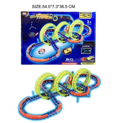 Extreme Race trkaća staza sadrži 74 dijela za sastavljanje, uključujući ravne dionice, oštre zavoje, dvije razine i tri fluorescentne petlje koje svijetle u mraku.… Pročitaj više