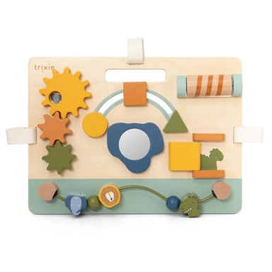 TRIXIE drvena aktivna ploča Mrs. Elephant edukativna je ploča koja potiče dječju maštu, motoričke vještine i koordinaciju pokreta. Različiti pomični elementi i teksture pozivaju djecu na istraživanje i eksperimentiranje. Ploča je prilagođena mališanima koji vole učiti kroz aktivnu igru i dodirom otkrivati nove oblike i funkcije.