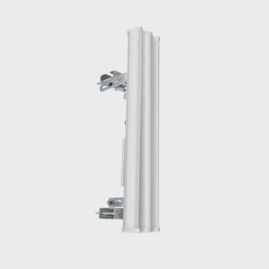 UBIQUITI AMO‑5G10 sektor je antena bijele boje, certificirana po standardu EN 302 326 DN2, s dvostrukom polarizacijom i VSWR omjerom od 1,6:1. Nudi pojačanje od 10 dBi i namijenjena je vanjskoj instalaciji, uz montažu na zid.