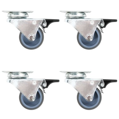 Set od 32 udvojena okretna kotačića, od kojih polovica ima kočnice, bit će savršen dodatak maloj opremi i namještaju poput radne klupe, kolica, stolića za kavu, stalka za biljke, polica za knjige, kolica za kupnju itd. Ovi kotačići napravljeni su od TPR-a (termoplastične gume), koji se odlikuje dobrom otpornošću na udarce i vibracije, što im omogućuje da rade glatko i tiho. Uz to, njihove mekane površine učinkovito štite vaš pod od grebanja. Pored toga, pocinčani željezni okvir vrlo je otporan na hrđu, čime pridonosi čvrstoći i izdržljivosti kotačića. Ovi okretni kotačići opremljeni su i kočnicama za fleksibilno upravljanje. Svaki kotačić ima maksimalnu nosivost do 100 kg. - Boja: Siva - Materijal: TPR (termoplastična guma) i pocinčano željezo - Promjer kotačića: 50 mm - Veličina ploče: 60 x 60 mm (D x Š) - Maksimalna nosivost: 100 kg (svaki kotačić)