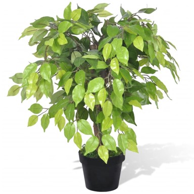 Umjetno stablo fikusa je visoko 60 cm i nikada neće uvenuti. Zbog minijaturnih dimenzija može se postaviti bilo gdje, bez da zauzima mnogo prostora. 420 gusto zelenih listova ima varijacije u boji koje biljku čine životnijom i ljepšom. Ukrasna biljka je veoma izdržljiva jer je napravljena od visokokvalitetnih materijala. Idealna je za ljude koji žele dašak prirode u svojem domu, ali nemaju vremena da se brinu o pravoj biljci ili su alergične na bilje. Isporuka uključuje umjetnu biljku i teglu. - Vrsta biljke: Fikus - Materijal grana i grančica: Plastika i željezna žica - Materijal debla: Drvo - Ukupna visina: 60 cm - Broj listova: 420 - Plastična tegla se dostavlja - Promjer tegle: 17,8 cm - Tkanina: Poliester: 100%
