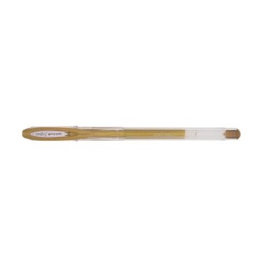 Zlatni UNI UM-120NM roler koristi pigmentnu vodootpornu gel tintu s česticama plemenitih metala koje daju visok sjaj. Pogodan je za pisanje po papiru, fotografijama, plastici i tekstilu. Karbidna kuglica promjera 0,8 mm stvara ispis širine 0,5 mm, pružajući precizne i trajne linije. Cijena je za komad, komercijalno pakiranje uključuje 12 komada.