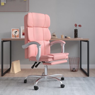 S minimalističkim dizajnom, ovaj moderni uredski naslonjač kombinira eleganciju i udobnost, zbog čega privlači pozornost u vašem radnom prostoru. - Izdržljiva umjetna koža: Vrhunska umjetna koža izuzetno je izdržljiv materijal. Otporna je na mrlje, zbog čega se lako čisti vlažnom krpom. Glatka površina također daje luksuzni izgled i ljepotu prave kože. - Podesivi naslon za leđa i visina: Posebno je dizajnirana s funkcijom naginjanja, tako da možete podesiti naslon za leđa i oslonac za noge kako vam odgovara. Pomoću poluge prilagodite visinu sjedala prema svojim željama. - Praktičan dizajn: Okretni dizajn od 360 stupnjeva omogućuje širi raspon kretanja. Osim toga, praktično je kretati se pomoću kotačića. - Čvrst i stabilan okvir: Okviri od metala i šperploče osiguravaju čvrstoću i stabilnost. Napomena: - Svaki proizvod dolazi s priručnikom za sastavljanje u kutiji radi lakšeg sastavljanja. - Boja: Ružičasta - Materijal: Umjetna koža (75 % polivinilklorid, 5 % pamuk, 20 % poliester), metal, šperploča - Materijal punjenja: Pjena - Ukupne dimenzije: 63 x 56 x (112,5 - 122) cm (Š x D x V) - Dimenzije u ležećem položaju: 63 x 128,5 x (100 - 109,5) cm (Š x D x V) - Veličina sjedala: 51 x 44 cm (Š x D) - Visina sjedala od tla: 46,5 - 56 cm - Visina naslona za ruke od tla: 67,5 - 77 cm