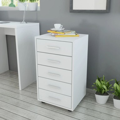 Uredski ormarić sa kotačima i 5 ladica Bijeli