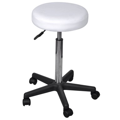 Uredski stolac pruža komforno mjesto za sjedenje i moderan stil. Uz suvremen dizajn Uredski stolac je uglađen i čini sjedenje užitkom. Visina stolca je podesiva od barske visine sve do najniže uz pomoć mehanizma za podizanje. Visokokvalitetna presvlaka pruža udobno sjedenje. Uredski stolac je lagan za jednostavno premještanje. Stavka će biti izvrstan dodatak za vaš dom. - Promjer baze: 52 cm - Promjer sjedala: 35,5 cm - Podesiva visina: 65 - 98 cm - Težina: 3,5 kg - Boja: Bijela - Maksimalna nosivost: 110 kg - Tkanina: Pamuk: 13%, Poliester: 20%, Poliuretan: 7%, PVC: 60%