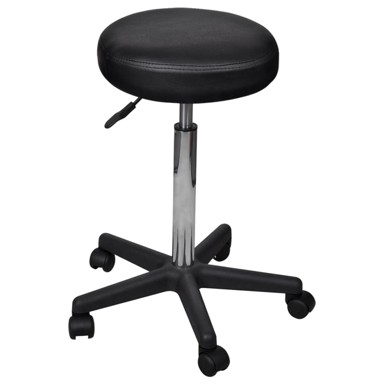 Uredski stolac pruža komforno mjesto za sjedenje i moderan stil. Uz suvremen dizajn Uredski stolac je uglađen i čini sjedenje užitkom. Visina stolca je podesiva od barske visine sve do najniže uz pomoć mehanizma za podizanje. Visokokvalitetna presvlaka pruža udobno sjedenje. Uredski stolac je lagan za jednostavno premještanje. Stavka će biti izvrstan dodatak za vaš dom. - Promjer baze: 52 cm - Promjer sjedala: 35,5 cm - Podesiva visina: 64 - 84 cm - Težina: 3,5 kg - Boja: Crna - Tkanina: Pamuk: 13%, Poliester: 20%, Poliuretan: 7%, PVC: 60%