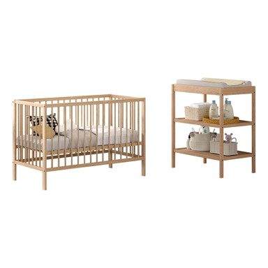 Dječji set namještaja Dino prekrasan je dodatak svakoj dječjoj sobi, nudi udobnost i sigurnost. Dječji krevetić dimenzija 60 x 120 cm ima rešetku podesivu u tri visine, š… Pročitaj više