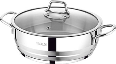 VIVALDI plitki lonac Aster promjera 28 cm osmišljen je za pripremu većih jela s ravnomjernom raspodjelom topline. Praktičan oblik olakšava rad u kuhinji. Prikladan je za obitelške obroke.
