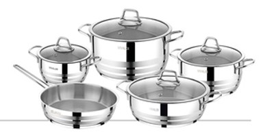 VIVALDI set posuđa Aster u 9-dijelnoj konfiguraciji pruža proširene mogućnosti pripreme obroka. Set je namijenjen kuhanju, pirjanju i posluživanju raznih jela. Funkcionalna izvedba osigurava svestranu primjenu u kuhinji.