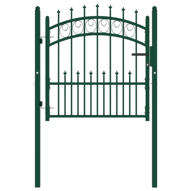 Vrata za ogradu oblikuju praktičnu sigurnosnu pregradu za vaš vrt, dvorište ili terasu. Izrađena od izdržljivog čelika, vrata za ogradu imaju čvrstu konstrukciju i premazana su prahom protiv hrđe i korozije. Uz okomite šipke sa šiljcima i snažnu vodoravnu prečku kao ojačanje, Vrtna vrata pružaju visok stupanj sigurnosti. Lučni dizajn vrha pridonosi njihovoj eleganciji. Dolaze s dva snažna stupa s čvrstim šarkama za jednostavnu ugradnju, a sustav zaključavanja s tri odgovarajuća ključa također je uključen u isporuku. - Boja: Zelena - Materijal: Čelik s praškastim premazom - Ukupna veličina: 102 x 150 cm (Š x V) - Visina panela vrata: 100 cm - Sastavljanje potrebno: Da