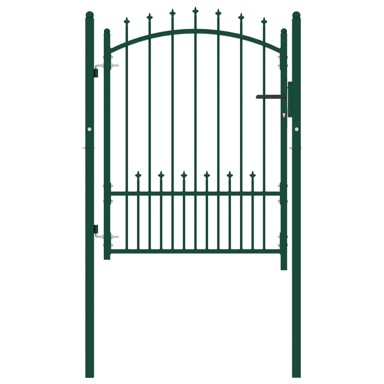 Vrata za ogradu oblikuju praktičnu sigurnosnu pregradu za vaš vrt, dvorište ili terasu. Izrađena od izdržljivog čelika, vrata za ogradu imaju čvrstu konstrukciju i premazana su prahom protiv hrđe i korozije. Uz okomite šipke sa šiljcima i snažnu vodoravnu prečku kao ojačanje, Vrtna vrata pružaju visok stupanj sigurnosti. Lučni dizajn vrha pridonosi njihovoj eleganciji. Dolaze s dva snažna stupa s čvrstim šarkama za jednostavnu ugradnju, a sustav zaključavanja s tri odgovarajuća ključa također je uključen u isporuku. - Boja: Zelena - Materijal: Čelik s praškastim premazom - Ukupna veličina: 102 x 175 cm (Š x V) - Visina panela vrata: 125 cm - Sastavljanje potrebno: Da