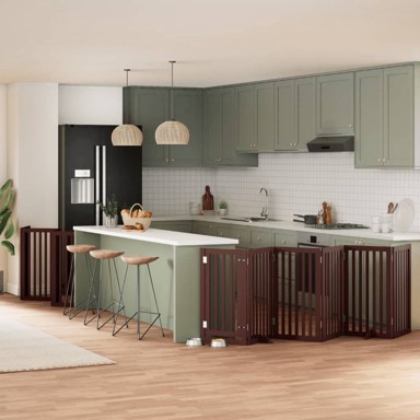 Vrata za pse stavljaju vašeg ljubimca u fiksno područje aktivnosti, u kojem ga možete čuvati na sigurnom i spriječiti da vas ometa. - Izdržljiv materijal: Vrata za pse napravljena su od drva topole s bojom na bazi vode, što ih čini izdržljivima, dugotrajnima i lakima za čišćenje. - Jednostavna za upotrebu: Vrata za pse ne zahtijevaju ugradnju ili bušenje koje oštećuje vaš dom. Ova vrata za pse mogu se potpuno sklopiti jer nemaju noge, što ih čini lakima za nošenje i spremanje u ormar ili negdje drugdje. - Praktičan dizajn: Vrata za pse imaju dvije čvrste noge, koje pružaju stabilnost i omogućuju jednostavno podešavanje. Uz to, uključuju panel s vratašcima i opremljena su bravama, što pruža povećanu sigurnost i praktičnost za vas i vaše ljubimce. - Višestruka primjena: Ova vrata za pse mogu učinkovito spriječiti vaše ljubimce da preskoče i prođu, stoga su savršena za sigurno držanje vaših ljubimaca u dnevnoj sobi, kuhinji, na stubištu i u predsoblju. - Boja: Smeđa - Materijal: Drvo topole - Dimenzije svakog panela: 50 x 90 x 2 cm (Š x V x Deb.) - Ukupna duljina: 600 cm - Razmak šipki: 6 cm - Dimenzije nogu: 30 x 8 x 2 cm (D x Š x V) - Prikladno za male/srednje pse - Samostojeća i sklopiva (bez ugradnje) - Sastavljanje potrebno: Da - Isporuka sadrži: - 11 x ploča - 1 x panel s vratašcima - 2 x noga - 26 x šarke - 2 x brava za vrata - 3 x ključ