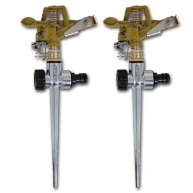 Atraktivni set prskalica od 2 dijela omogućava djelomično ili potpuno zalijevanje, ovisno o Vašim potrebama. Prskalice dolaze sa šiljkom za fiksiranje te dva konektora za crijevo. S maksimalnim promjerom zalijevanja od 24 metra, ukupna efektivna površina za zalijevanje iznosi 450 m².