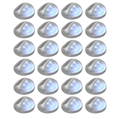 Naše LED solarne zidne svjetiljke opremljene su baterijom AA koja se puni sunčevom svjetlošću. Vrtne solarne svjetiljke mogu se također ugraditi ispod krova ili pričvrstiti na ogradu. S dvije LED žarulja od 0,06 vata unutra, solarna svjetiljka može pružiti osvjetljenje od 0,12 vata. Tijekom dana svjetiljka pretvara dnevnu svjetlost u električnu energiju i puni bateriju. U sumrak se automatski uključuje i radi na struju pohranjenu tijekom dana. Trajanje svjetla ovisi o količini pohranjene dnevne svjetlosti. Solarna zidna svjetiljka ekološki je prihvatljiva, štedi energiju i zahtijeva malo održavanja. Zahvaljujući priloženim materijalima za montažu, vanjska solarna svjetiljka jednostavno se ugrađuje. Isporuka uključuje 24 solarne svjetiljke. - Boja: Srebrna - Materijal: PP (polipropilen) - Dimenzije (svake): 11 x 5 cm (Promjer x V) - Izvor napajanja: Solarni - Sadrži 2 LED žarulje (2 x 0,06 W) po primjerku - S unaprijed ugrađenom punjivom baterijom AA (1,2 V / NI-MH 600 mAh) - Stupanj zaštite: IP44 - Isporuka uključuje 24 solarne zidne svjetiljke