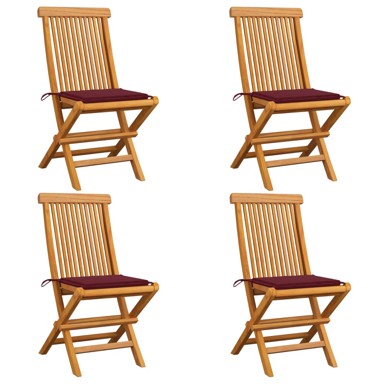Vrtne stolice s bordo jastucima 4 kom od masivne tikovine