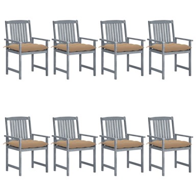 Vrtne stolice s jastucima 8 kom sive od masivnog drva bagrema