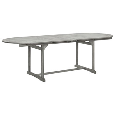 Drveni vrtni blagovaonski stol dodaje dašak rustičnog šarma vašem vrtu, terasi ili dvorištu! Vanjski stol napravljen je od masivnog bagremovog drva, tropskog tvrdog drva, koje je otporno na vremenske utjecaje i vrlo izdržljivo. Zahvaljujući posebnom dizajnu, ovaj vrtni stol može se produžiti kad je potreban dodatni prostor. Napomena: Kako biste produžili vijek trajanja svog vanjskog namještaja, preporučujemo vam da ga redovito čistite i ne ostavljate ga nepotrebno na otvorenom bez zaštite. Čišćenje: Upotrijebite blagu otopinu sapuna. Pohrana: Ako je moguće, čuvajte na hladnom i suhom mjestu u zatvorenom. Ako se proizvod čuva na otvorenom, zaštitite ga vodootpornom navlakom. Obrišite i osušite višak vode ili snijega s ravnih površina nakon kiše ili snijega. Omogućite dovoljnu cirkulaciju zraka kako biste izbjegli oštećenja od vlage. - Boja: Siva - Materijal: Masivno bagremovo drvo sa sivim izbijeljenim premazom - Dimenzije: (160 - 200 - 240) x 100 x 75 cm (D x Š x V) - Može se proširiti - S otvorom za suncobran - Sastavljanje potrebno: Da - Napomena: Stolna ploča sadrži dvije ploče koje se mogu produžiti.