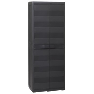 Naš visokokvalitetni vrtni ormarić je idealan za organiziranje i pohranu vaših kućanskih potrepština, alata ili drugih predmeta u vrtu, na terasi itd. Zahvaljujući svom bezvremenskom dizajnu ovaj ormarić će se uklopiti u bilo koji dekor. Ovaj TÜV-GS certificirani ormarić je izrađen od čvrstog i izdržljivog polipropilena (PP). Prostrani ormarić ima prozračne police koje se mogu podesiti kako bi smjestile predmete različitih veličina. Ovaj vrtni ormar se može zaključati pomoću lokota za dodatnu sigurnost (lokot nije uključen u isporuku). Ovaj vrtni ormarić za pohranu je vrlo jednostavan za čišćenje. Ima kompaktan dizajn i maksimalno će iskoristiti ograničen prostor. Sastavljanje je jednostavno. - Boja: Crna - Materijal: Polipropilen (PP) - Dimenzije: 65 x 38 x 171 cm (D x Š x V) - S 2 vrata i 3 prozračne, podesive police - Svaka polica ima sigurnosnu bravu (koja imobilizira policu) - Povišeni vrh i dno s odvodnim utorima - Maksimalna nosivost svake police: 12 kg - TÜV-GS certificirano - Može se zaključati pomoću lokota (nije uključen u isporuku) - Jednostavno za sastavljanje (alati za montažu su uključeni u isporuku) - UPOZORENJE: Kako bi se spriječilo prevrtanje, ovaj proizvod mora se upotrebljavati s uključenim priborom za montiranje na zid
