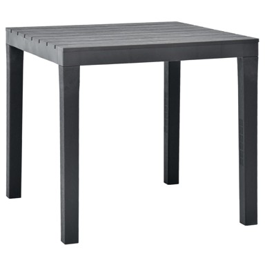Vrtni blagovaonski stol bit će odličan izbor za objedovanje na otvorenom u vrtu, na terasi ili u kampu. Stol je napravljen od izdržljive plastike, zbog čega je otporan na vremenske utjecaje i lako se čisti. Rešetkasti dizajn stolne ploče daje dodatnu eleganciju. Uz to je lagan, tako da ga možete vrlo lako pomicati po kući. - Boja: Antracit - Materijal: Plastika - Dimenzije: 78 x 78 x 72 cm (D x Š x V) - Otporno na vremenske utjecaje - Stolna ploča s rešetkastim dizajnom - Lako održavanje