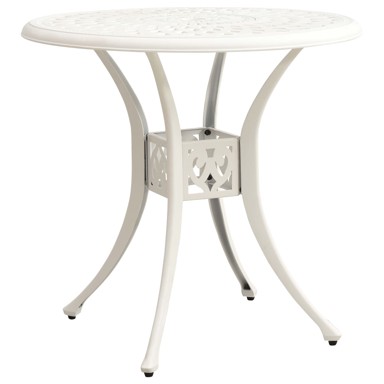 Uživajte u finom popodnevnom čaju ili šalici kave na otvorenom na ovom vrtnom stolu sa svojom obitelji i prijateljima! Ovaj stolić za čaj napravljen je od lijevanog aluminija, zbog čega je stabilan, čvrst i idealan za svakodnevnu upotrebu na otvorenom. Stolna ploča ima jedinstven šuplji dizajn i prikladna je za stavljanje pića, hrane i ostalih potrepština. Četiri odvojene noge pružaju vam pouzdano korisničko iskustvo zbog svoje stabilnosti. Uz to, ovaj stol za terasu ima otvor u koji možete savršeno smjestiti svoj suncobran kako bi vas zaštitio od sunca ili kiše. - Boja: Bijela - Materijal: Lijevani aluminij - Dimenzije: 78 x 72 cm (Promjer x V) - Sastavljanje potrebno: Da