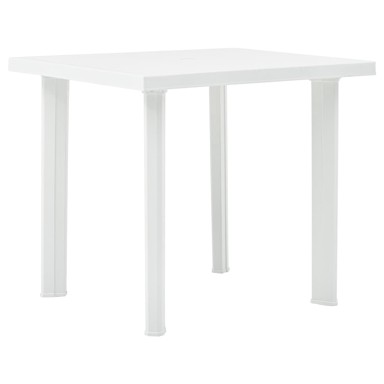 Vrtni stol je otporan na vremenske utjecaje i bit će odličan izbor za objedovanje u vrtu, dvorištu ili kampu. Vrtni blagovaonski stol napravljen je od izdržljive plastike, zbog čega je otporan na vremenske utjecaje i jednostavan za čišćenje. Ima otvor kako biste ga mogli upotrebljavati sa suncobranom i ostati u hladu. Također je lagan i jednostavno se pomiče. - Boja: Bijela - Materijal: Plastika - Dimenzije: 80 x 75 x 72 cm (D x Š x V) - Otporno na vremenske utjecaje - S otvorom za suncobran
