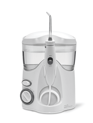 WATERPIK oralni tuš WF-100 Ultra namijenjen je čišćenju međuzubnih prostora i održavanju oralne higijene kroz snažan mlaz vode. Klinički je dokazano da je učinkovitiji od tradicionalnog zubnog konca u borbi protiv plaka, gingivitisa i krvarenja desni. Uređaj je prikladan kao dopuna svakodnevnom pranju zubi za temeljitiji osjećaj čistoće.