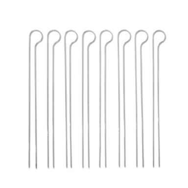 Set od 8 dvostrukih nabodača omogućuje lako i stabilno nabadanje mesa, povrća i drugih namirnica bez klizanja. Zahvaljujući paralelnim šiljcima, hrana ostaje na mjestu pri okretanju. Izrađeni su od kvalitetnog nehrđajućeg čelika te se mogu višekratno koristiti. Praktični su i jednostavni za čišćenje.