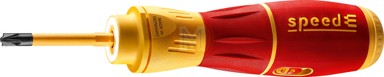 Wiha 591 E-Screwdriver speedE II električni odvijač omogućuje brzo obavljanje poslova zahvaljujući električnom pogonu. Uključuje Li-Ion baterije (2x 1500 mAh) i punjač, te 7 tankih bitova odobrenih za maksimalno 1.000 V AC. Ugrađeno LED svjetlo omogućuje dobru vidljivost u radnom području, a može se koristiti u svim radnim položajima pomoću prstena za prekidač.