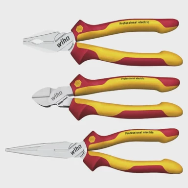 Set profesionalnih električnih kliješta tvrtke Wiha, označen brojem 26852, sastoji se od tri ključna alata: jednog bočnog rezača, jednog para ravnih kliješta i jednog para kombiniranih kliješta. Svaki od ovih alata dizajniran je s posebnim svojstvima i funkcijama kako bi se olakšalo i poboljšalo rukovanje električnim instalacijama.