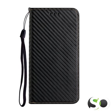 Original preklopna futrola u original ambalaži. Izrađena od visokokvalitetne umjetne kože. Izuzetno ugodno leži u ruci. Omogućuje pristup svim tipkama i funkcijama bez napora. Moguće ju je postaviti horizontalno na podlogu. Unutarnja strana sadrži pretince za kartice. Mobitel se montira u čvrsti TPU kalup koji ne može puknuti. Uređaj je kompletno zaštićen. Karbonski uzorak