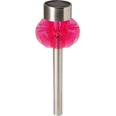 Solarna vrtna dekorativna LED lampa s kapacitetom od 600 mAh pruža ugodnu atmosferu u vašem vrtu. Automatsko uključivanje i isključivanje omogućuje do 8 sati neprekidnog rada. Opremljena je ugrađenom solarnom ćelijom i punjačem za bateriju, koristeći zamjenjivu NI-MH AA bateriju kapaciteta 1,2V / 600mAh. Izvor svjetlosti je LED bijele boje. Lampa ima roze plastičnu dekoraciju s metalnim tijelom.
